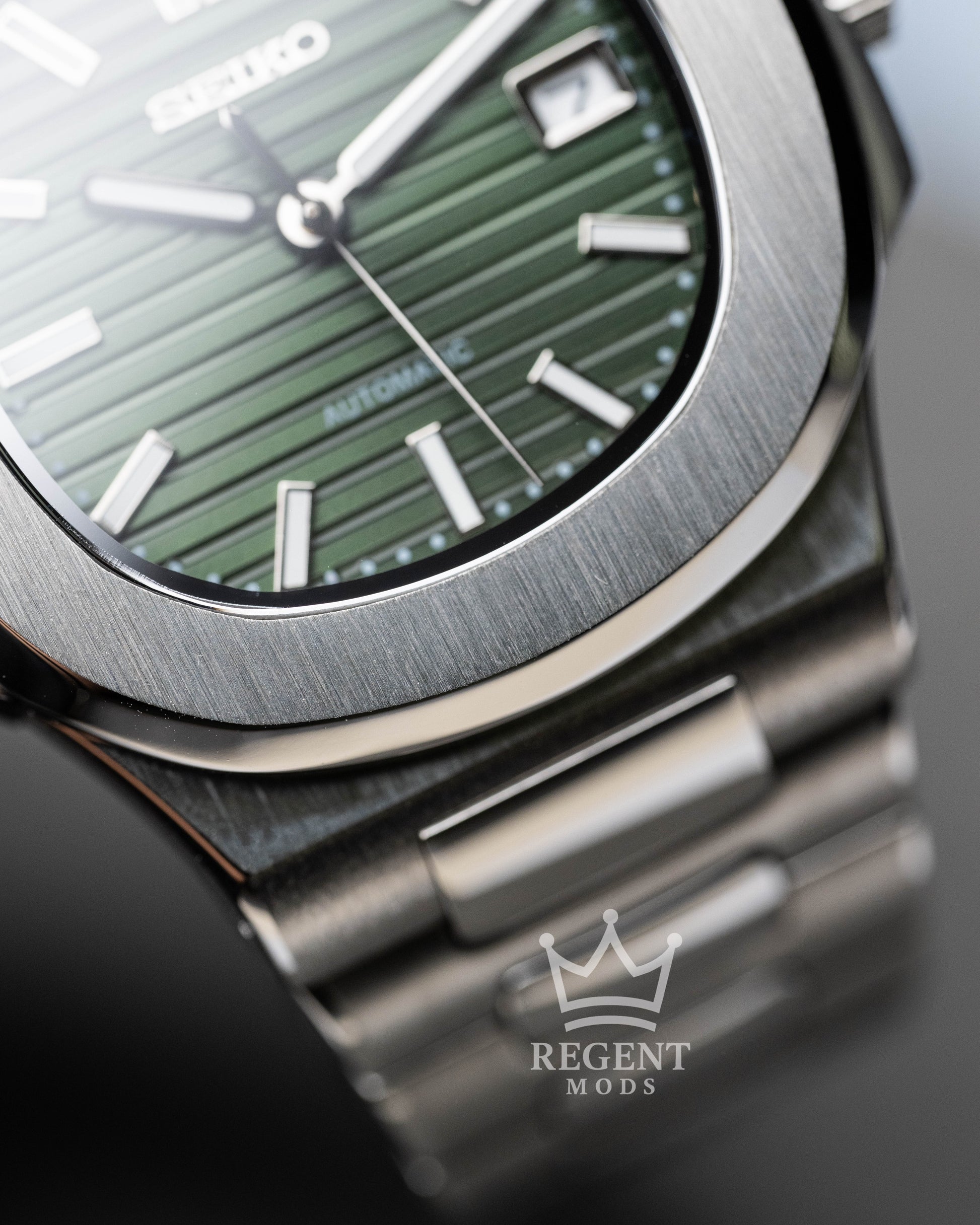 Step into the world of luxury-inspired modding with the Seiko Mod 5711/1A-014 Olive Nautilus—a meticulous tribute to the legendary Nautilus, engineered on a dependable Seiko NH35 automatic platform. This piece captures the essence of Gerald Genta’s masterpiece, reimagined for everyday wear and budget-conscious collectors.
